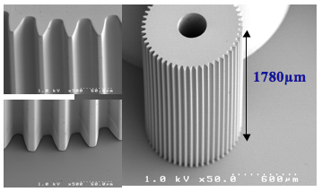 Figure 12: A tall, high aspect ratio gear made using LIGA technology.