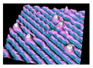 A colorized image of a scanning-tunneling microscope image of a surface,