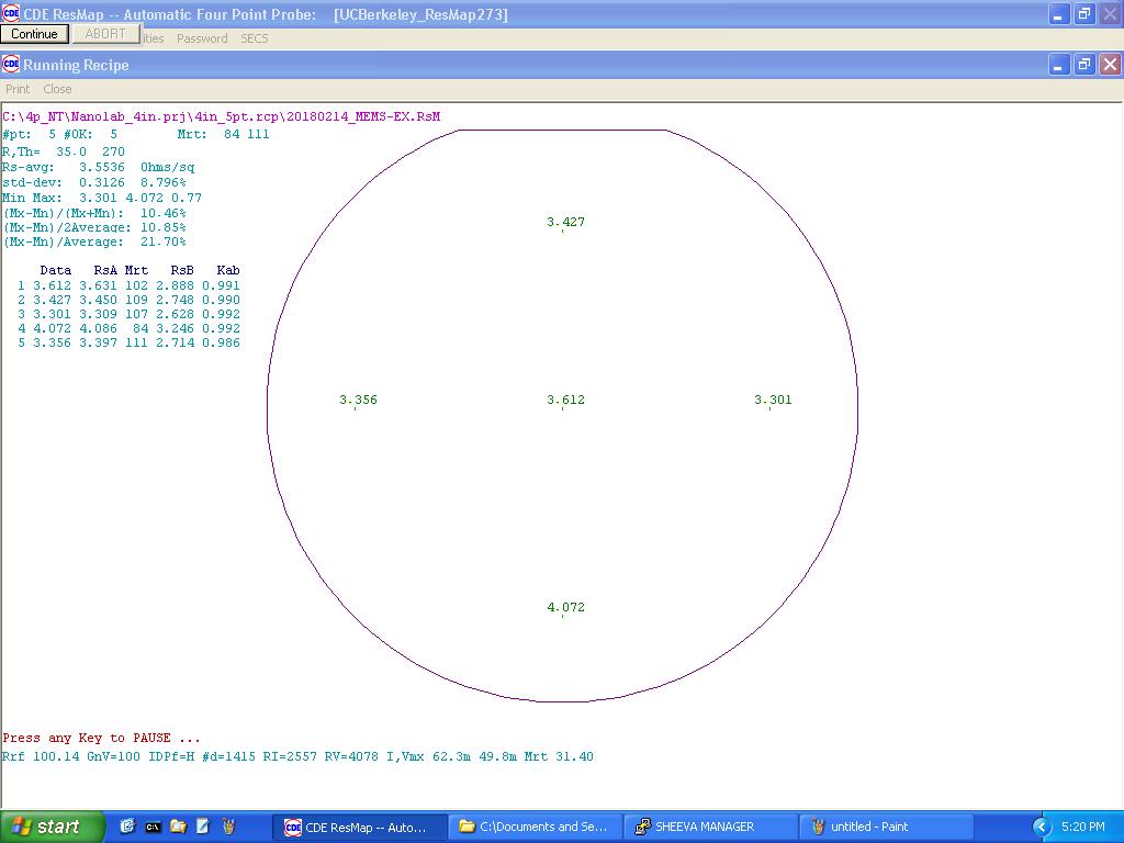 W001 SHEET RESISTANCE MEASUREMENT